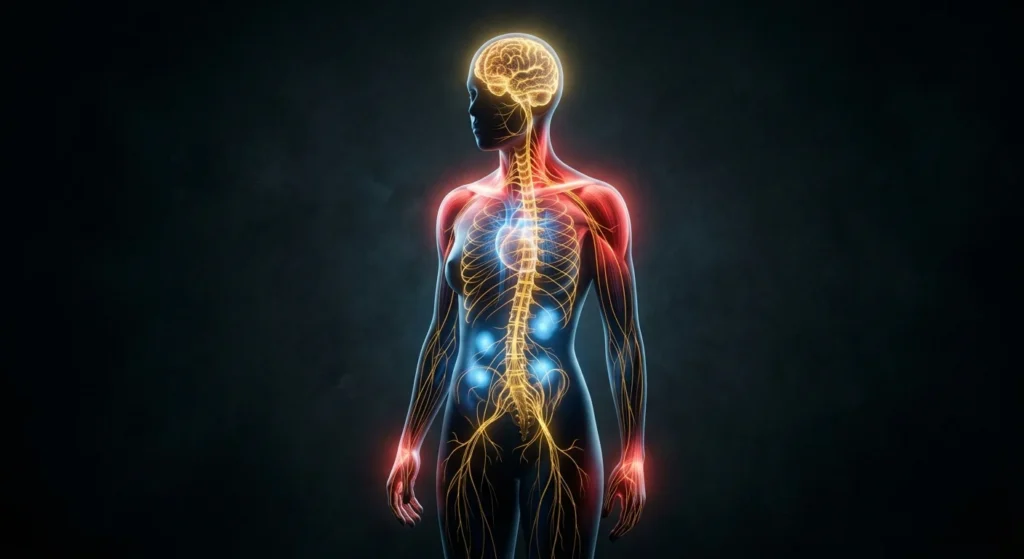 Tu cuerpo no miente. Mientras que la mente puede racionalizar, justificar y mentirse a sí misma diciendo que «todo está bien», la biología es honesta. Si vives en un entorno que percibes como hostil, tus glándulas suprarrenales y tu sistema digestivo reflejarán esa percepción mucho antes de que seas consciente de ella. No es lo que sientes… es cómo está tu sistema. Un sistema nervioso en estado de alerta constante (simpaticotonía) manifestará síntomas de inflamación, problemas de piel o taquicardias. No son fallos del sistema; son respuestas coherentes a una señal de peligro que el cerebro está procesando.