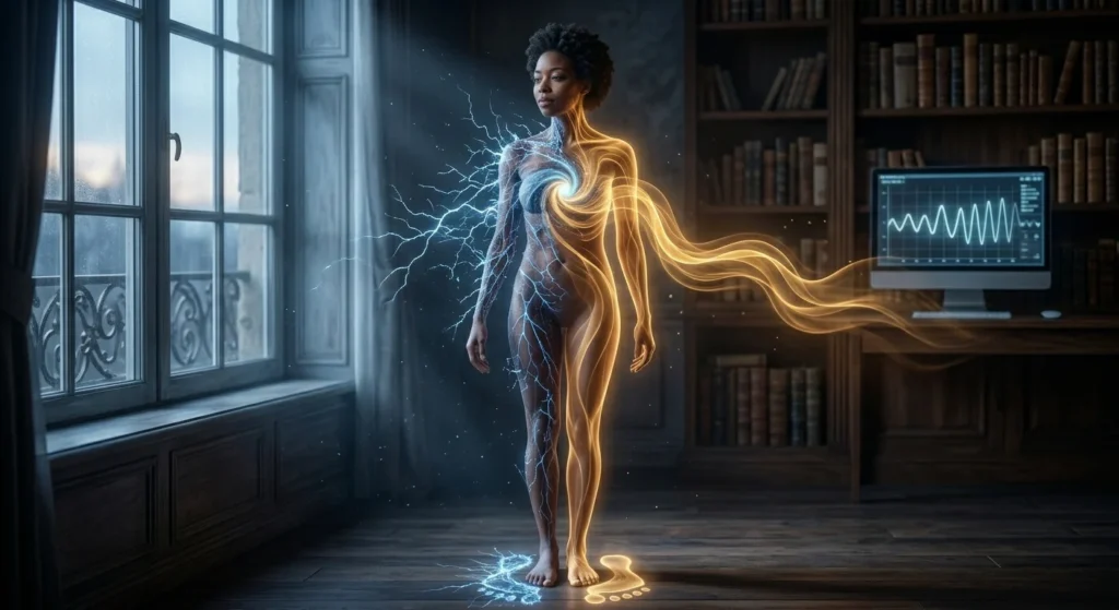 Si esto no sucede, el exceso de cortisol nocturno bloquea la producción de melatonina y la hormona del crecimiento. Estás durmiendo, sí, pero tu cuerpo se está desgastando casi al mismo ritmo que cuando estás despierto. Y lo más fascinante de todo es que esto se puede medir objetivamente mediante la Variabilidad de la Frecuencia Cardíaca (HRV) y el análisis de ondas cerebrales; no es una teoría esotérica, es biología pura, medible y cuantificable.